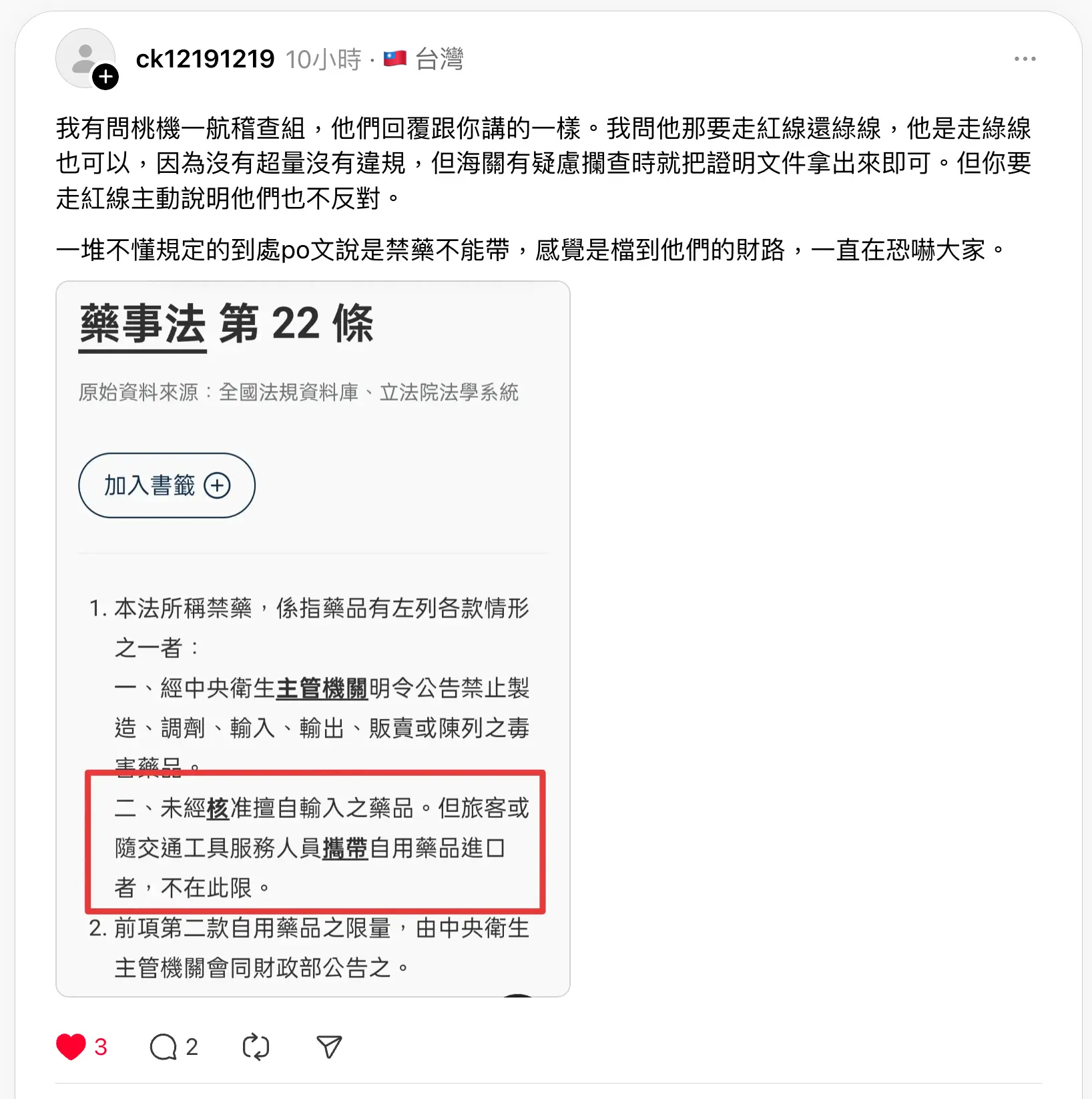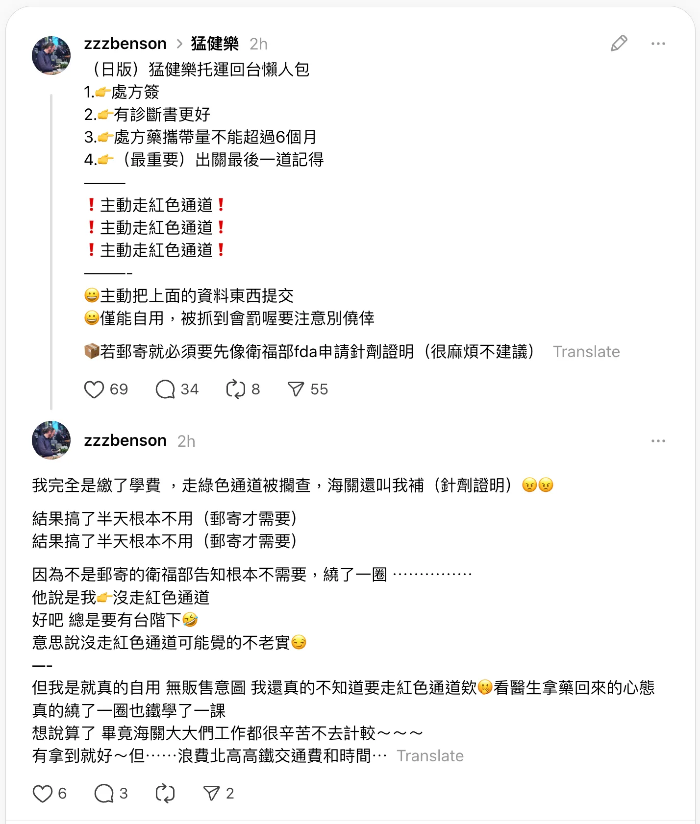 ※ 非推薦海外醫療,無法納入台灣健保紀錄,請務必自行評估風險、自行負責 ※※ 杜絕違法代購、轉售處方藥,本文章僅針對旅遊回國自用等法規討論 ※
