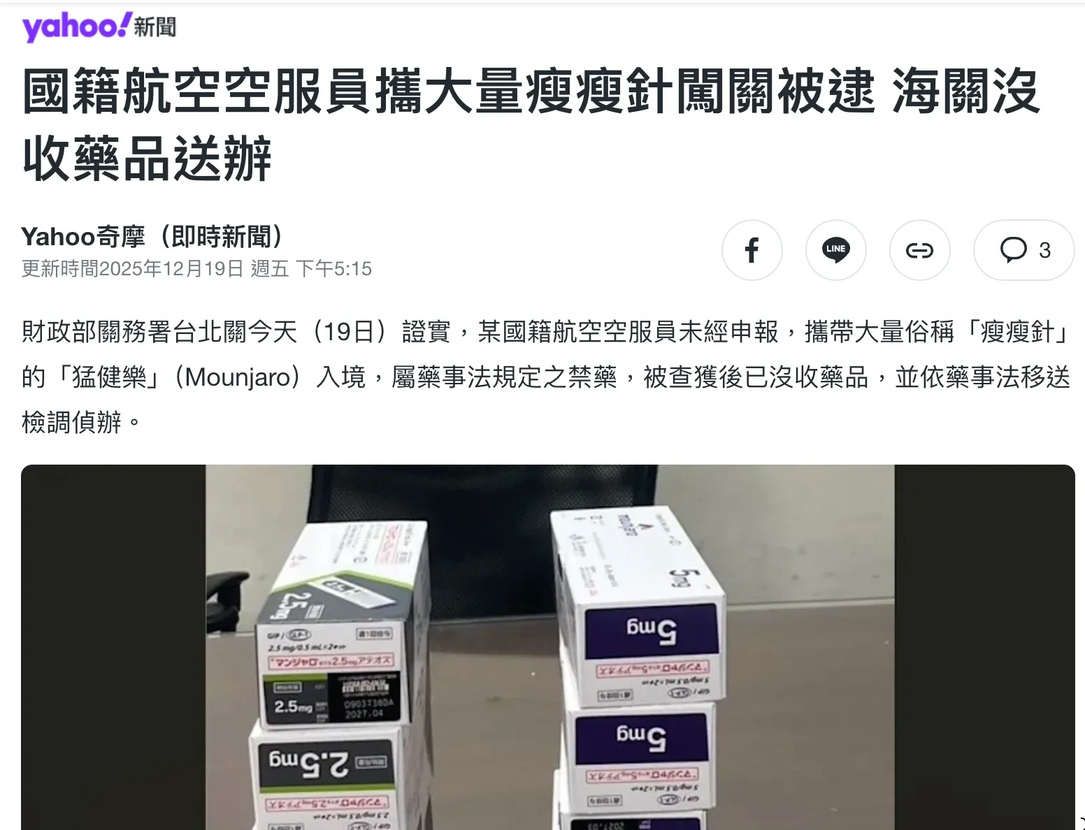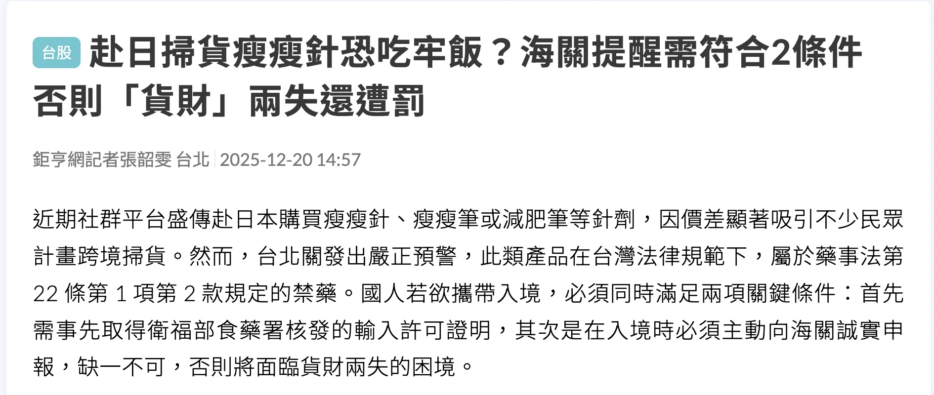 赴日掃貨瘦瘦針恐吃牢飯?海關提醒需符合2條件 否則「貨財」兩失還遭罰